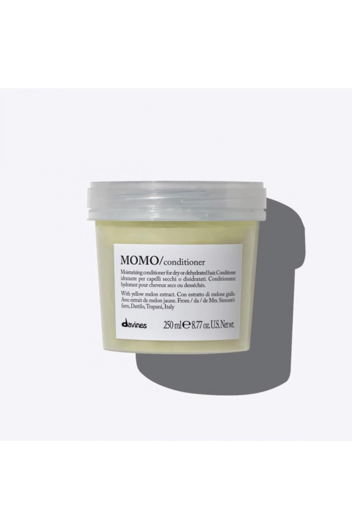 نرم کننده 250 میلی لیتری Davines Momo Moisturizing Conditioner احیا کننده و مرطوب کننده موهای خشک یا کم آب. با عصاره خربزه. روغن خار مریم، پانتنول و روغن جوجوبا موجود در آن موها را مرطوب، نرم و درخشنده می کند. یک فرمول غنی، اما بدون وزن کردن مو.